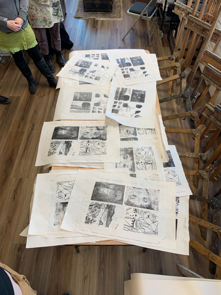 Let me start by stating, this is not a ‘How To’ post, I still can’t quite get my head around this particular practice, but what I can say, it’s so mind-blowing I had to share my experience with you. I’m also not going to sit here and copy and paste from the internet the theory of it, you can do that yourself, and I reckon, it still won’t have you coming close to understanding without doing the practice. I was lucky enough – as one of the tutors at Draw – to be offered a taster session with professional printmakers and lithographers Scarlett Rebecca, Ruta Prusinskaite and Euan Harries. With a new direct press in the studio, we were all eager to learn and test our skill and new equipment.
