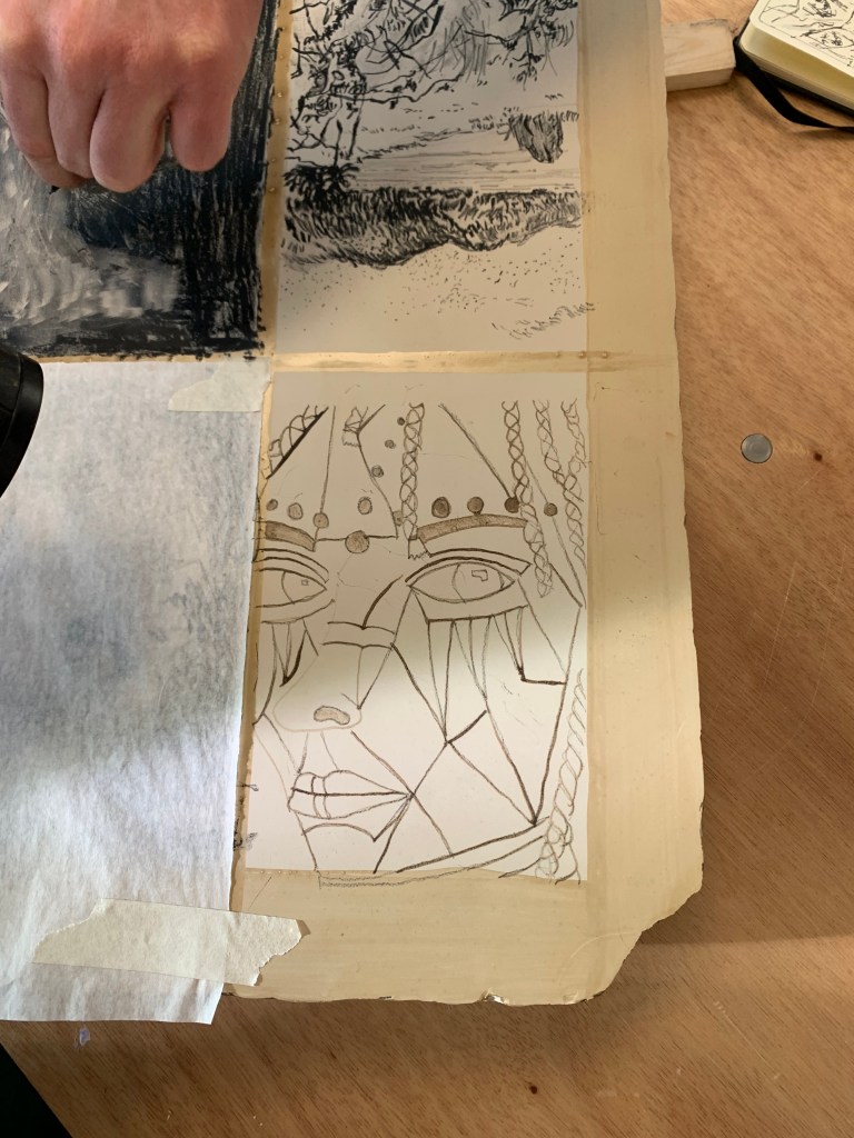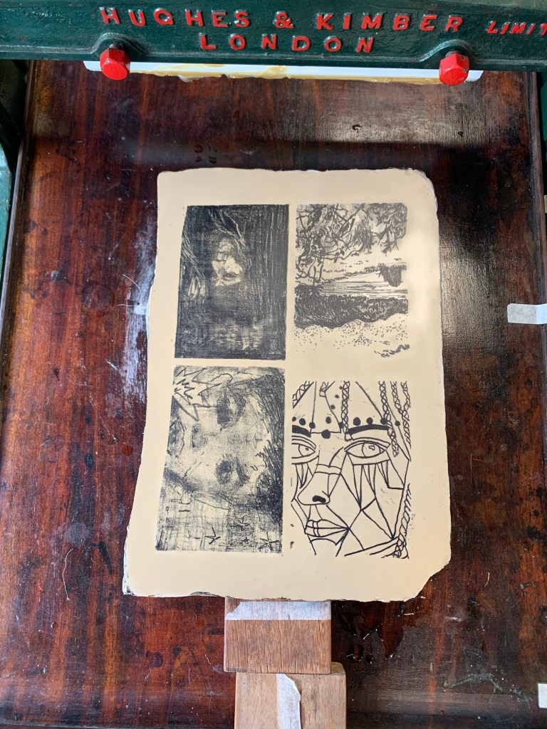 Drawing freehand isn’t my strongest skill – yet. So I had asked beforehand, if I was able to bring in something I’d done before and transfer it, I didn’t get as much time as the others to add more detail to my piece, but this gave me, not only the opportunity to create something I will actually like, but to keep this in mind for the next time I try the art of lithography.